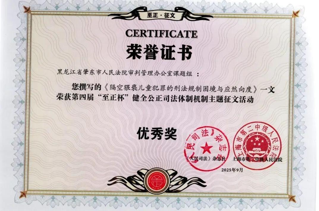 肇東市人民法院1篇論文在人民司法“至正杯”征文活動(dòng)中獲獎(jiǎng)