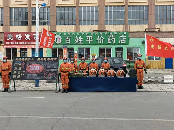 圖強(qiáng)林業(yè)局設(shè)立定點(diǎn)宣傳臺(tái),通過(guò)展板和森林防滅火裝備向群眾普及森林防火常識(shí)(趙明 攝)