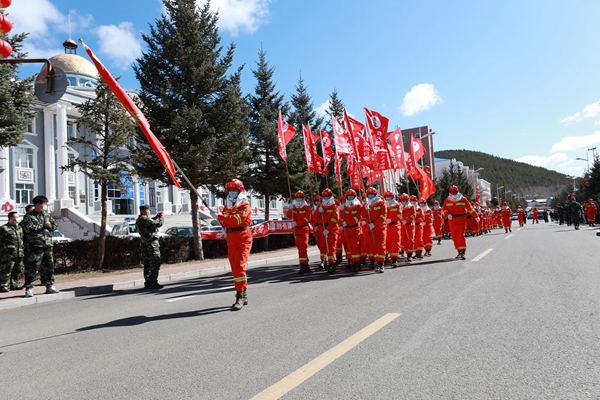 圖為阿木爾林業(yè)局專業(yè)撲火隊員組成的人員方隊(王力 攝)