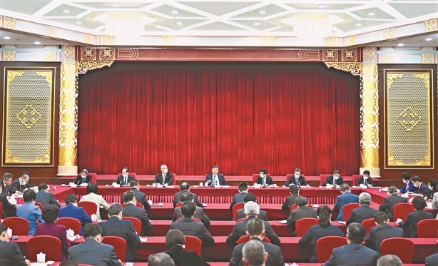 3月6日,中共中央總書記、國家主席、中央軍委主席習(xí)近平看望參加全國政協(xié)十四屆一次會議的民建、工商聯(lián)界委員,并參加聯(lián)組會,聽取意見和建議。中共中央政治局常委、全國政協(xié)十四屆一次會議主席團(tuán)會議主持人王滬寧,中共中央政治局常委蔡奇、丁薛祥參加看望和討論。新華社記者 謝環(huán)馳攝