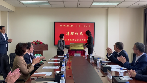 長(zhǎng)春師范大學(xué)教育學(xué)院院長(zhǎng)孫中華、長(zhǎng)春早期教育職業(yè)學(xué)院副院長(zhǎng)劉韻鳳共同為“專業(yè)實(shí)習(xí)實(shí)訓(xùn)基地”揭牌。