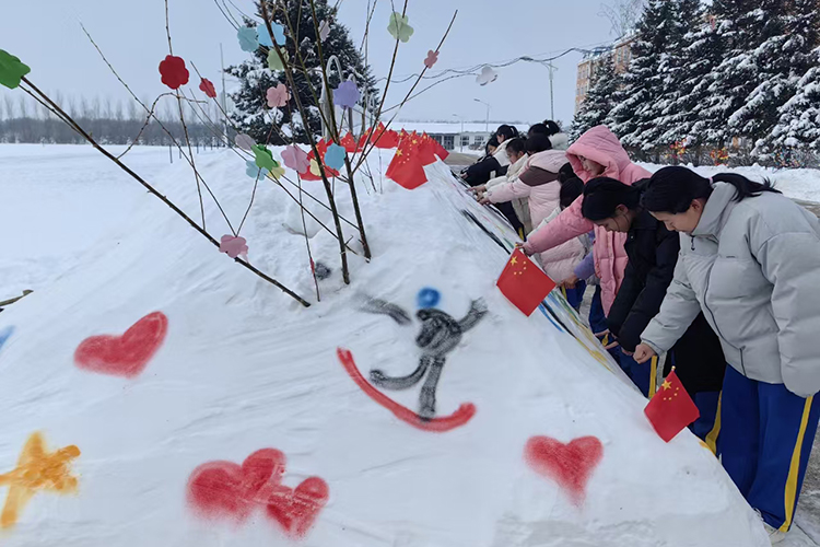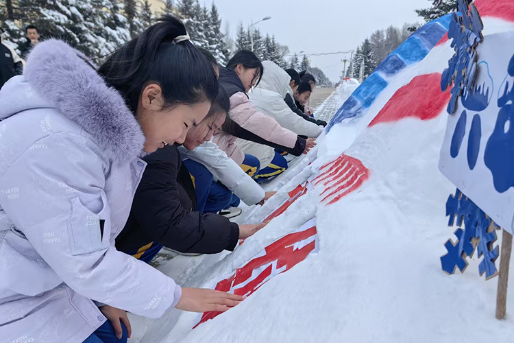 在銀裝素裹的校園里,師生們充分發(fā)揮想象力和創(chuàng)造力,一起堆雪、塑型、裝飾,在制作過程中,他們紛紛拿起手中的工具,鏟、挖、雕、刻,全神貫注地投入到雪雕創(chuàng)作中。轉(zhuǎn)眼間,一個個形態(tài)各異、栩栩如生的雪雕作品誕生,為冬日的校園增添了一份別樣的詩情畫意,也飽含著全體師生對亞冬會的美好祝福和對冰雪運動的熱愛。