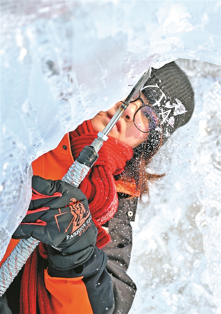 本屆比賽吸引了來自中、俄、美、法等12個(gè)國家的30支冰雕隊(duì)參賽?!毒聿赝ぁ芬詢和笾獮橹黝},用幼童勤奮讀書、與書為友的畫面,刻畫出其對知識的渴望。本報(bào)記者 郭俊峰攝