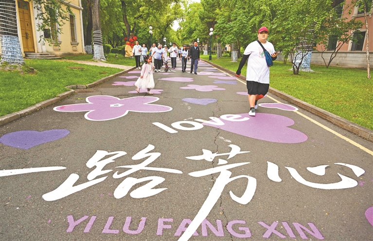 近日,哈爾濱市太陽(yáng)島景區(qū)臨江街上新增添的彩繪“一路芳心”景觀成為新的網(wǎng)紅打卡地,多彩的“愛(ài)心”和花朵交匯組成,猶如太陽(yáng)島上的“莫奈花園”,吸引大批市民和游客們相約太陽(yáng)島,愛(ài)上哈爾濱。