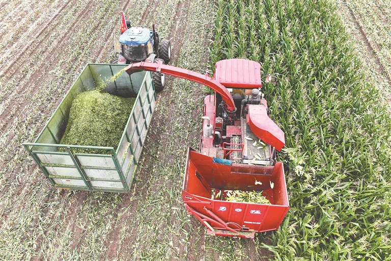 收割現(xiàn)場一派忙碌景象,農(nóng)場調(diào)配的2臺青貯下棒一體收割機(jī)高效作業(yè),實現(xiàn)莖穗同步收獲,效率較傳統(tǒng)模式提升3倍以上,10輛青貯運輸車與4輛糯玉米棒運輸車有序配合,日均完成150畝。作業(yè)中,12名黨員主動組成“助農(nóng)突擊隊”,深入田壟撿拾玉米,確保顆粒歸倉。