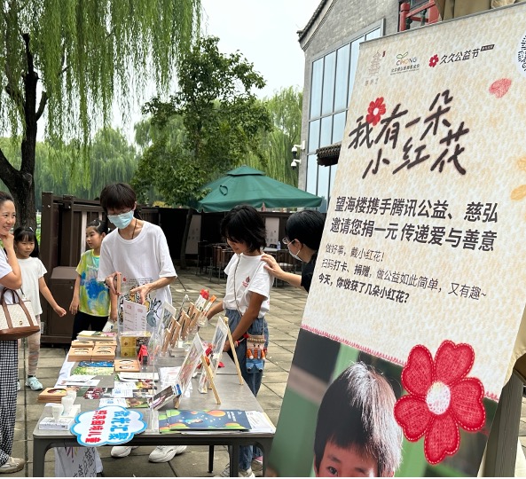 北京慈弘慈善基金會在后海望海樓舉辦“小紅花公益市集”,通過義賣來支持鄉(xiāng)村學(xué)校圖書角建設(shè),受到市民和游客們的歡迎