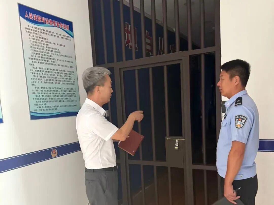 此次檢查遵循“不留死角、不留盲區(qū)、不留隱患”的原則,聚焦警務安全核心,深入院機關(guān)、派出法庭開展細致全面排查,實地查看用水用電、安檢設備、安檢通道、監(jiān)控設備、消防設施等關(guān)鍵部位,對安檢流程、防暴器材使用熟練度及突發(fā)事件應急處突能力現(xiàn)場進行測試,對派出法庭矛盾易發(fā)點的人群密集接待區(qū)及檔案資料區(qū)重點進行檢查,杜絕安全隱患。