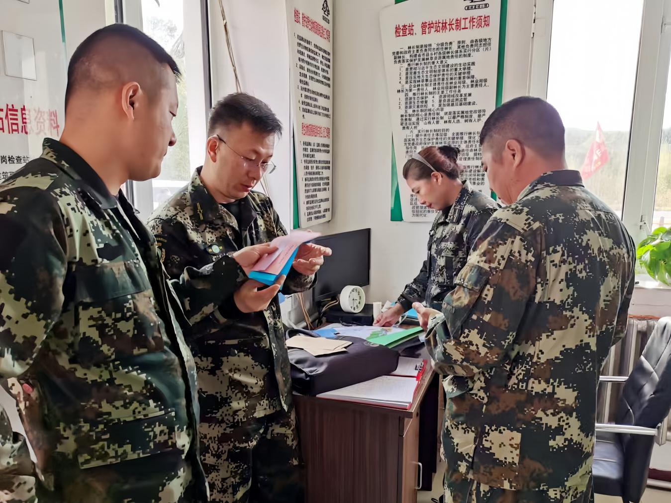 集團評審組檢查管護站的內業(yè)建設(張凱強 攝)