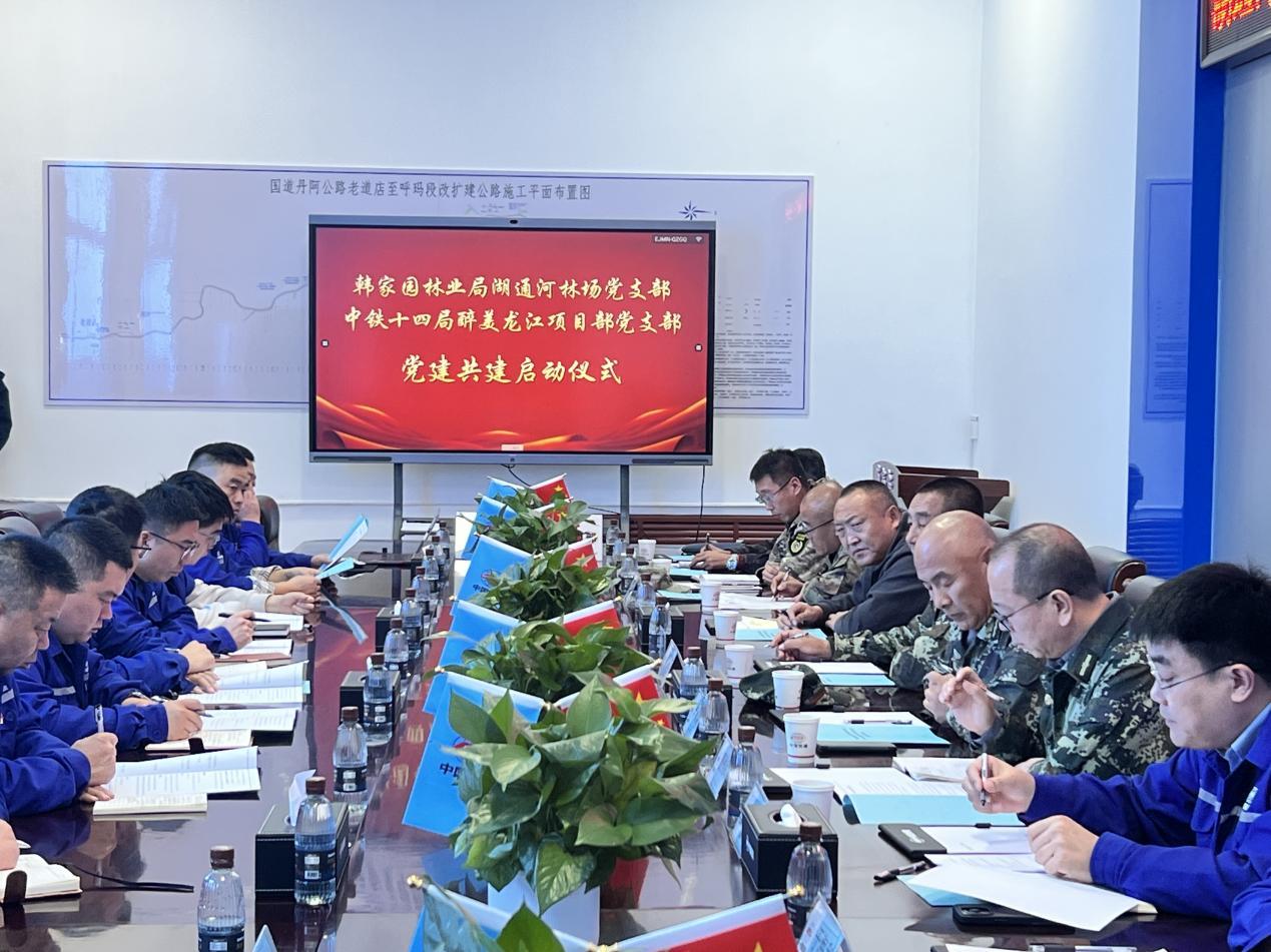 雙方在中鐵十四局醉美龍江項(xiàng)目部會(huì)議室舉行了黨建共建啟動(dòng)儀式,黨組織負(fù)責(zé)人分別介紹了各自單位的支部建設(shè)、重點(diǎn)任務(wù)開展情況,就黨員作用發(fā)揮、森林防火任務(wù)、資源保護(hù)態(tài)勢(shì)、職工雙增、施工安全等工作進(jìn)行了交流探討,形成了“聚合力、守底線、互幫扶、齊發(fā)展”的融合發(fā)展思路。