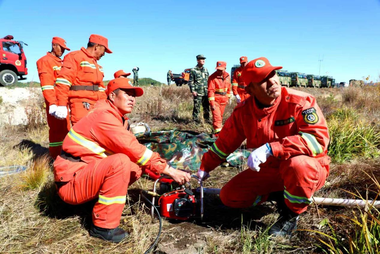 阿木爾林業(yè)局專業(yè)撲火隊員利用便攜式水泵在水源旁取水(王力 攝)