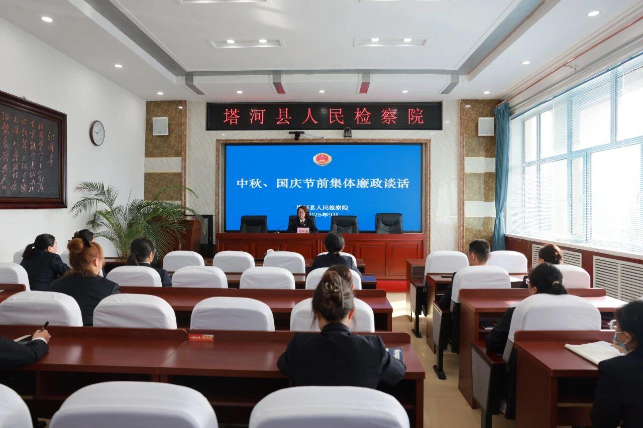 黑龍江經(jīng)濟(jì)網(wǎng)訊(周潔)國慶、中秋雙節(jié)臨近,為進(jìn)一步嚴(yán)明紀(jì)律要求,筑牢廉潔防線,9月25日,塔河縣人民檢察院組織召開節(jié)前廉政談話會(huì)。會(huì)議由黨組書記、檢察長趙麗葳主持,全體檢察干警參加。