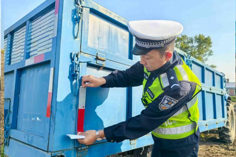 黑龍江經(jīng)濟網(wǎng)訊(李寶 劉昌龍 記者梁新立)9月23日,五大連池市公安局反恐與交巡特警大隊持續(xù)深化農(nóng)用車“亮尾”行動,以“嚴管控、廣宣傳”的工作思路,全面加強秋收期間農(nóng)村道路交通安全管理,有效預防和減少因農(nóng)用車尾部標識不清引發(fā)的夜間交通事故,為群眾秋收時節(jié)出行安全點亮“警示燈”。