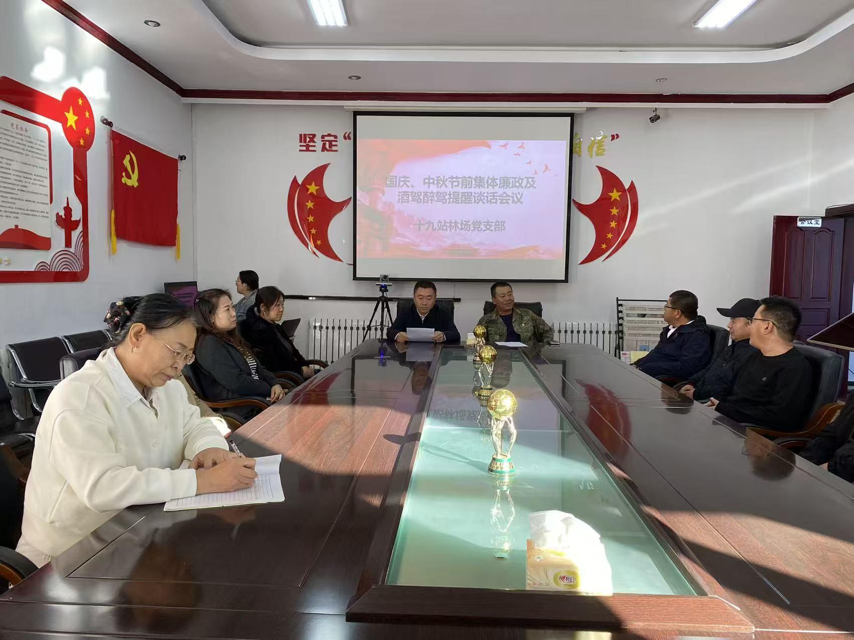 黑龍江經(jīng)濟網(wǎng)訊(王秀萍)國慶、中秋將至,為鞏固拓展深入貫徹中央八項規(guī)定精神學習教育成果,進一步增強黨員干部廉潔自律意識和拒腐防變能力,確保節(jié)儉文明廉潔過節(jié),9月29日,十八站林業(yè)局十九站林場黨支部召開國慶、中秋節(jié)前集體廉政提醒談話會議,并對林場國慶假期安全生產(chǎn)工作進行部署。