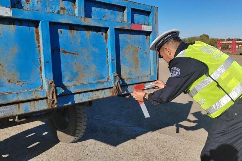 強化隱患排查,筑牢安全防線。民警深入秋收一線開展安全排查,在交通領域,重點整治農村道路坑洼、占道晾曬、無警示標識等問題,對農機具無牌無證、酒后駕駛、違法載人等違法行為開展專項查處,同步開展“亮尾行動”,為反光標識不全的農用車免費粘貼反光條,從源頭預防交通事故。