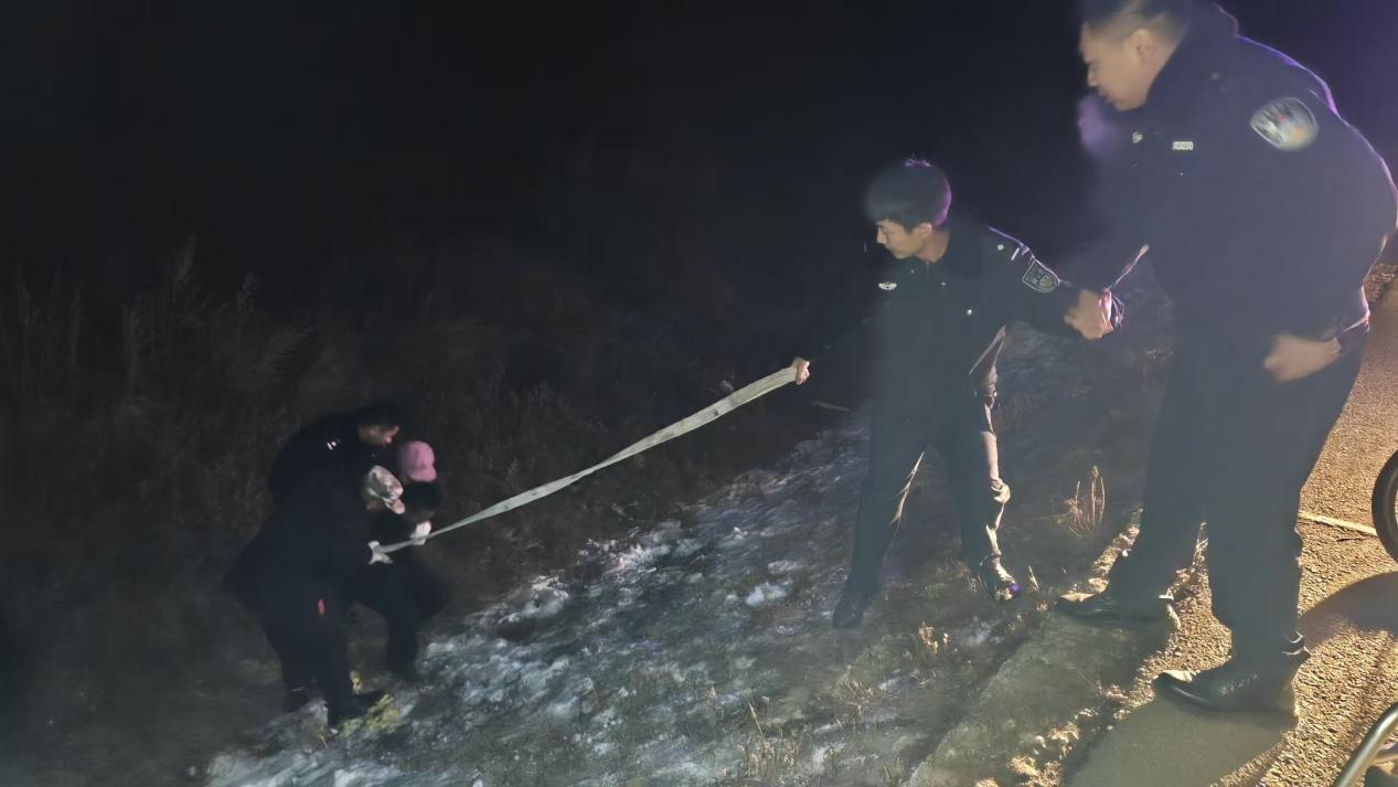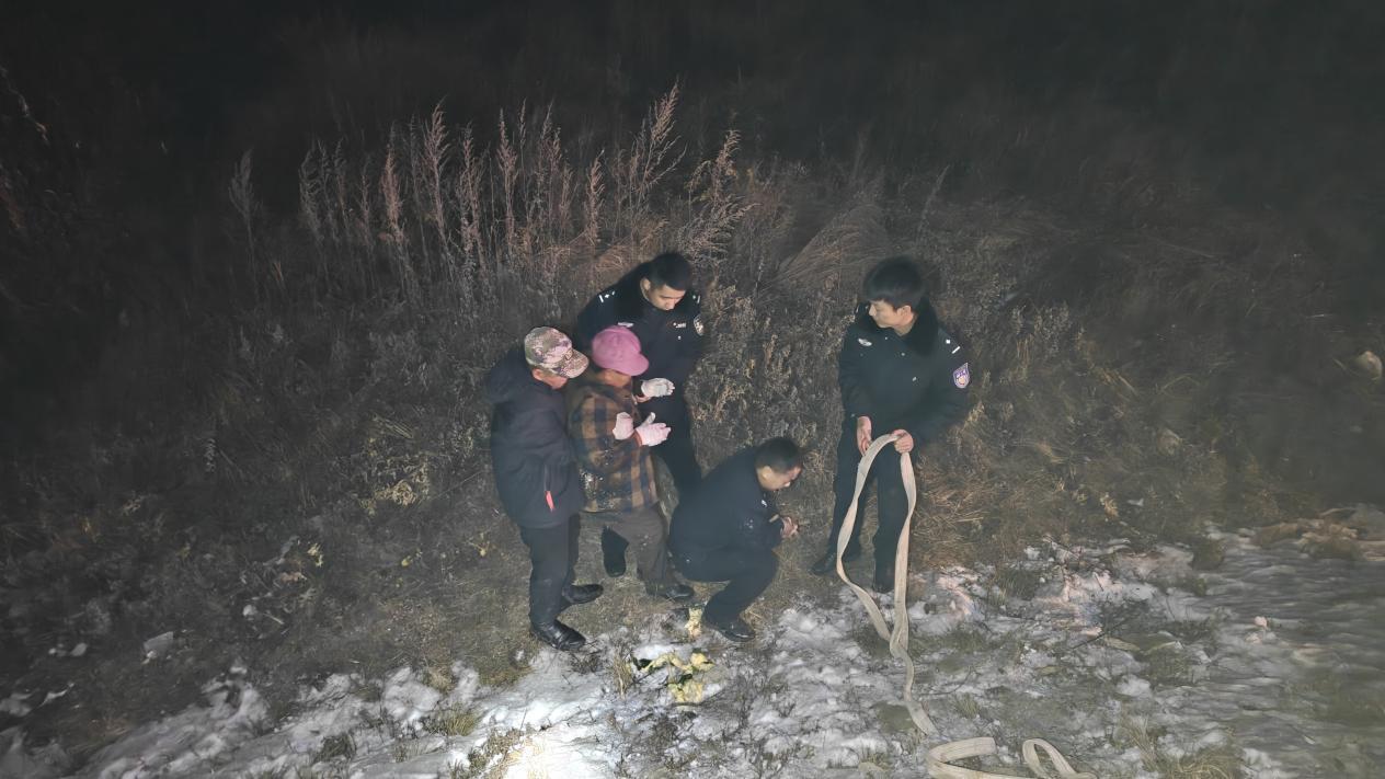 據(jù)了解,當(dāng)時呼瑪縣公安局興華派出所民輔警正對轄區(qū)開展常態(tài)化巡查,發(fā)現(xiàn)一位群眾在路邊攔住警車,民輔警立即停車查看情況。詢問得知,該群眾的妻子乘坐電動輪椅時由于天黑路滑不慎駛進(jìn)了深溝,因其妻子年過六旬身體殘疾且行動不便,墜入深溝摔倒后無法起身,恰好此時看到巡邏的警車,便立刻攔車尋求幫助。