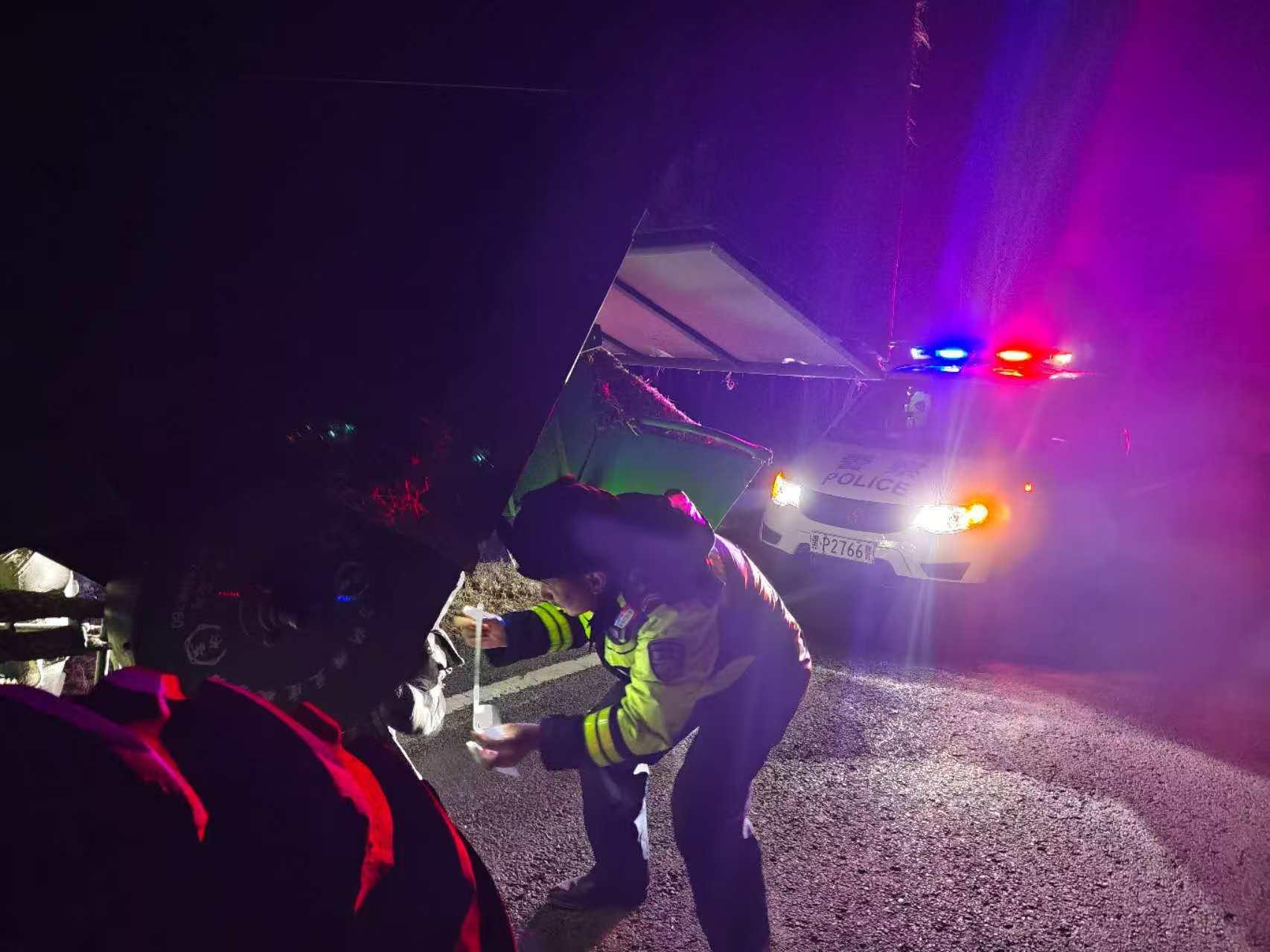 當(dāng)晚,呼瑪縣公安局民警按照日常巡邏部署,穿梭在轄區(qū)的鄉(xiāng)村道路上,守護(hù)著夜間道路的暢通與安全。在巡邏過程中民警發(fā)現(xiàn)一輛收割機(jī)因故障停在道路中間,且未設(shè)置任何警示標(biāo)識(shí),存在重大交通安全隱患。