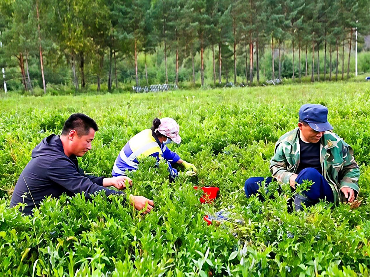 林場工作人員正在采摘藍(lán)莓(張凱強 攝)