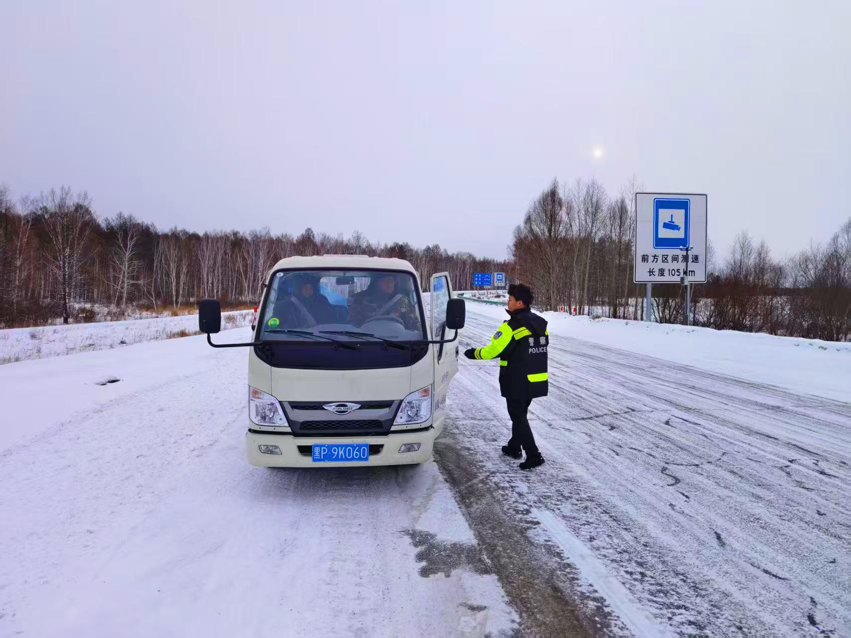 隨后,民輔警駕駛警車小心翼翼地穿行在積雪路段,一邊緩慢行駛,一邊實時觀察路面情況,并不時向游客講解雪天出行安全常識,提醒景區(qū)內(nèi)棧道濕滑需謹(jǐn)慎慢行。臨別前,呼瑪公安民輔警再次叮囑游客注意游覽安全,及時關(guān)注天氣變化和返程路況,必要時可隨時聯(lián)系景區(qū)執(zhí)勤崗點求助。