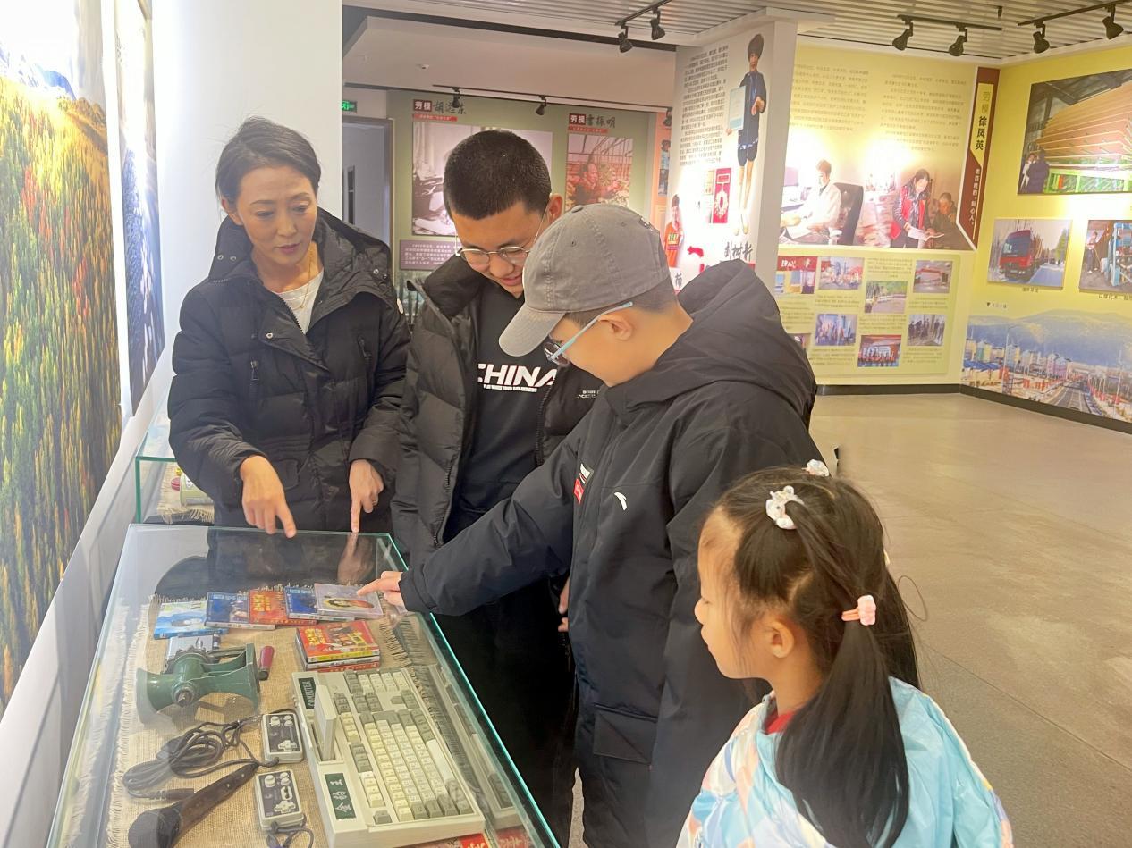 工作人員在為職工子女介紹博物館的展品(宗海燕 攝)